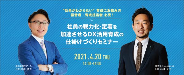 社員の戦力化・定着を加速させるDX活用育成の仕掛けづくりをテーマに株式会社Legaseedと共催セミナーを開催!