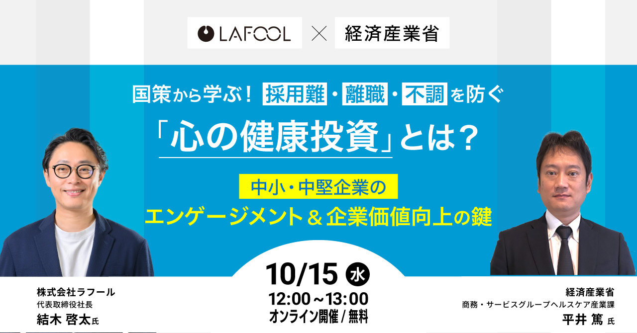 【経済産業省登壇!】国策から学ぶ!採用難・離職・不調を防ぐ「心の健康投資」とは?中小・中堅企業のエンゲージメント&企業価値向上の鍵